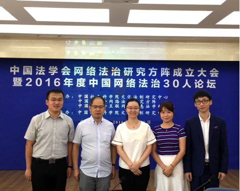 2016年8月28日,中国法学会网络法治研究方阵举行成立大会暨2016年度中国网络法治30人论坛。西安交大信息安全法律研究中心成功入选中国法学会“网络法治研究方阵”理事单位,成为全国五家理事单位之一。校社科处处长贾毅华、学院丁卫副院长受邀参加成立大会并致辞,信息安全法律研究中心副主任王玥副教授带领研究团队成员博士生马宁、党家玉参加论坛。开幕式由中国社科院文化法制研究中心主任、中国法学会互联网与信息法学会副会长周汉华主持。中国法学会研究部主任李仕春、中国法学会副会长李林、中国信息通信研究院政策与经济研究所所长鲁春丛、中南大学米兰(中国)院长陈云良、米兰网页版登录入口社科处处长贾毅华、华东政法大学刑事司米兰(中国)副院长王永全分别作为方阵理事单位代表致辞。