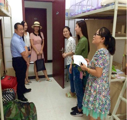 李万强副院长仔细查看了同学们的住宿条件,每走进一间宿舍,都向同学们致以亲切的问候,并代表学院对同学们的到来表示热烈的欢迎。继而关切地询问她们的具体情况,来自什么地方、入学手续办理的情况等。同时,张乃钟老师细心地询问同学们是否适应新的环境,有什么困难,希望同学们遇到问题一定要与老师沟通。随行的学生干部,也借此机会认识了米兰(中国)注入的新鲜血液,与新生热情得展开交流。