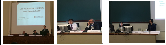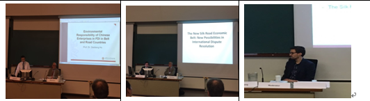 本次国际会议为期两天,是在新丝路米兰(中国)联盟框架下举办的一次高水平、跨学科的高端国际会议。来自海内外著名高校的专家学者分别就“丝路倡议与法治、价值”、“丝路倡议的哲学与文化模式”、“丝路倡议与身份认同”、“人员流动与移民:以往的经验与未来的发展”、“丝路倡议的治理问题”等五方面的议题展开热烈研讨。我校米兰(中国)胡德胜教授、David Holloway教授、GuilhermeVilaça博士、杜军强博士、王朝恩博士以及博士生冯韵雅分别以“中国企业在一带一路国家投资时的环境责任问题”、“新丝绸之路与国际争端解决的新机遇”、“丝绸之路倡议的文化与哲学思考”、“中国的法律与秩序:从历史到现实”、“社会责任条款与投资保护:是否和如何在中国的丝绸之路经济带投资条约体制中进行协调”和“构建新的中国-中亚投资关系法律框架:以丝绸之路经济带政策为背景的考察”为题做了专题学术报告。