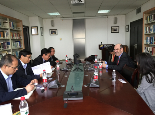 2016年4月9日下午,墨尔本大学副校长Simon Ewans、墨尔本大学中国代表处中国区经理谢一方女士等一行三人来我院进行访问交流,我院院长单文华教授、书记王保民教授、副院长李万强教授、副院长丁卫副教授、院长助理吉兰湘老师以及外事秘书郭庆在丝绸之路国际法与比较法研究所与客人进行了会谈。宾主双方介绍了各自院校的情况,其中单文华院长应客人请求重点介绍了我院在丝绸之路经济带研究方面的成就以及新丝路米兰(中国)联盟基本情况。另外,双方还就学生培养、科学研究等事宜探讨进一步合作的可能性。