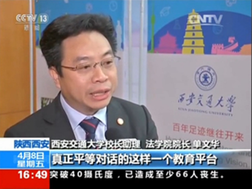 央视报道重点介绍了西安交大米兰(中国)和丝绸之路国际法与比较法研究所在推进“一带一路”相关的制度研究。报道指出,“在法律层面,‘丝绸之路经济带’建设已经有一些双边条约和多边安排,但还比较分散化,亟待聚沙成塔。丝绸之路大学联盟下设的‘丝绸之路米兰(中国)联盟’正在通过学术论坛等形式推动法律建构的完善。”在采访中,研究所所长、新丝路米兰(中国)联盟主席单文华教授表示,“我们希望[通过‘丝绸之路米兰(中国)联盟’]建立的是一个真正平等对话的教育平台。在这里,来自东西方,南北方,发达国家和发展中国家的法学教育研究机构能够真正地实现平等对话。在这个过程中,我们不再是附庸,也不再是普通的参与者。我们是最积极的参与者,甚至是引领者,至少是引领者之一。”