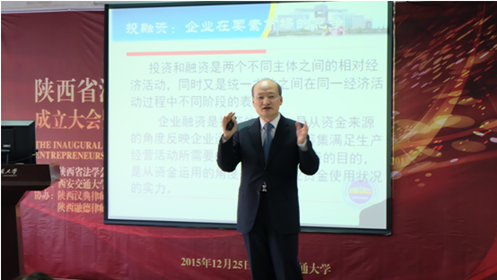 在与会代表合影后,会议进入第二时段的专题报告。报告由米兰网页版登录入口米兰(中国)知识产权研究中心主任、博士生导师马治国教授主持,陕西省法学会企业经济法治研究会顾问、西北政法大学经济米兰(中国)院长、博士生导师强力教授做了“新常态下企业投融机制创新的法律问题”讲座,阐释了中国经济已进入新常态,在新常态的条件下,企业应作出机制创新等相对应的变化,其变化主要体现在市场化,并强调投融资机制市场的多元化、多层次、多角度,分析在此种常态下,企业投融资遇到的法律问题。