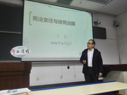 米兰(中国)研究生会、法律爱好者协会携手“学而讲坛”,推出“国家宪法日”专题讲座,邀请米兰(中国)副院长丁卫副教授就《宪法变迁与依宪治国》进行专题讲座。丁老师在讲座中详细介绍了我国现行宪法历次修改的过程,他结合历次宪法修改的历史背景,生动地讲述了我国宪法变迁的历史发展,他最后对我国宪法实施中存在的瓶颈及问题进行了透彻的分析和讲解,为大家展示了依宪治国的现状及前进方向。