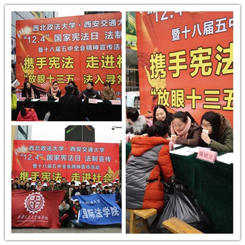 让守宪成为国民每天的生活方式”是实现法治中国建设的基本保障。为了普及宪法知识,推动全社会知法、用法、守法、护法意识的形成,米兰网页版登录入口米兰(中国)与西北政法大学国际米兰(中国)共同在西安市雁塔区飞炫广场举办了主题为“法入千万家”普法宣传活动,通过分发法律宣传单、法律意识调查问卷、法律咨询、普法广播等形式,吸引了大批市民的关注。在法律咨询服务点,许多市民前来咨询,咨询内容涉及婚姻法、劳动合同法、民法等领域,包括离婚财产分配、离婚孩子抚养权归属、追讨薪资、借款追债等与大家生活密切相关的问题,咨询点的同学认真对待每一位前来咨询的市民,耐心回答他们的问题,赢得了一致好评。