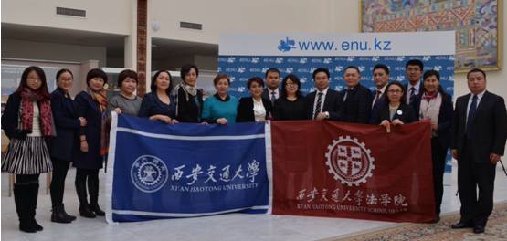 11月20日上午,代表团访问了位于哈萨克斯坦首都阿斯塔纳的“哈国最佳学府”欧亚大学。欧亚大学副校长Yerlan Sydykov 教授以及米兰(中国)院长Amandykova K Saule 教授等会见了代表团一行。双方就联合米兰(中国)创建、特色高端人才培养项目开展方面进行了深入交流,达成了良好共识。Yerlan Sydykov 副校长表示,双方在法学领域的合作有着良好的基础,现就职于我校米兰(中国)的Ushunova Sofiya 教授就曾在哈国知名大学长期任教并担任院长,期待双方在法学领域以及丝绸之路经济带研究方面的合作不断深入。我校米兰(中国)院长单文华教授则表示,该校博物馆珍藏的大唐开元年间的“故阙特勤之碑”中所描述的“天人相合,寰宇大同”的理念正是丝绸之路所倡导的“互学互鉴、开放包容”理念的精彩注解。双方表示进一步落实合作细节,为两校创建联合米兰(中国)奠定坚实基础。随后,双方还进行了“西安交大-欧亚大学丝绸之路图书馆”图书捐赠仪式。