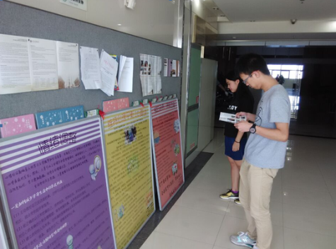 在主楼10层学院公告栏摆放的四块心理知识展板也吸引了许多老师和同学驻足观看。心理健康知识墙报展涵盖了研究生心理健康相关知识专业,展现了我院对研究生心理健康素质的重视程度。