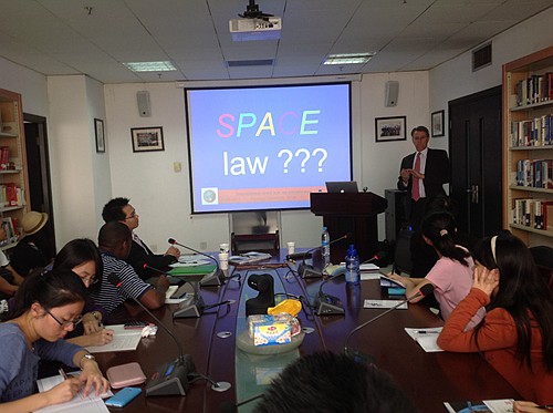9月29日上午,von der Dunk教授在丝绸之路国际法与比较法研究所研讨室为米兰(中国)师生带来了第一个空间法讲座——Introduction to International Space Law。von der Dunk教授系统梳理了空间法的缘起、调整对象和法律渊源,归纳了晚近空间法面临的主要问题与挑战,并分析了主要空间条约的规定。