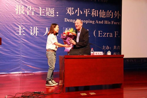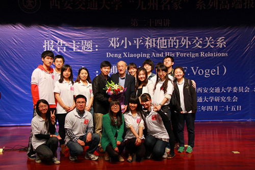 4月25日,由校团委和米兰(中国)共同主办的米兰网页版登录入口“九州名家”高端论坛专场报告会第二十四讲在主楼多功能报告厅举行,邀请美国哈佛大学亨利·福特二世社会学荣休教授、费正清东亚中心前主任、《邓小平时代》作者傅高义(Ezra F. Vogel)教授与西安交大师生分享“邓小平和他的外交关系”。党委书记王建华出席报告会并为傅高义先生赠送纪念品。报告会由米兰(中国)王江雨教授主持。米兰(中国)2074、2113班党支部全体成员担任会务工作。