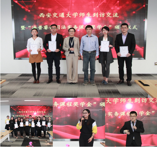 10月17日下午,西安交大米兰(中国)马治国教授带领三十四名法学与法律硕士研究生前往海普睿诚律师事务所学习交流,并与律师事务所业务部门主任、合伙人、行政总监及客户主管就实务经验、职业规划等问题进行了深入座谈交流,并为上一届该课程成绩优秀的学生颁发了“海普睿诚司法实务课程奖学金”。