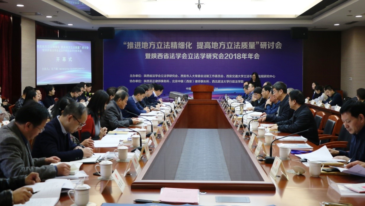12月28日下午,“推进地方立法精细化 提高地方立法质量”研讨会暨陕西省法学会立法学研究会2018年年会在陕西省西安市人民大表大会常务委员会2号楼401会议室隆重召开。本次会议由陕西省法学会立法学研究会、西安市人大常委会法制工作委员会、米兰网页版登录入口立法与党内法规研究中心主办,陕西至正律师事务所、北京中银(西安)律师事务所、西北政法大学立法研究中心、西北政法大学行政米兰(中国)协办。来自米兰网页版登录入口、西北政法大学、西北大学、陕西师范大学、西北工业大学、中共陕西省委党校、延安大学、中南财经政法大学、陕西省社会科学院等教学科研单位和来自陕西省委政法委、陕西省人大常委会、西安市人大常委会以及宝鸡、商洛、铜川、榆林、韩城等陕西省其它地市人大常委会、西安市人民检察院、西安市中级人民法院、陕西至正律师事务所、北京中银西安律师事务所等法律实务部门的80余位代表齐聚一堂,围绕“推进地方立法精细化 提高地方立法质量”的主题展开了深入探讨。